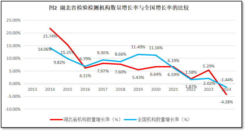 浙江省检验检测机构数量增长率与全国检验检测机构数量的增长率进行比较,结果如图2所示。